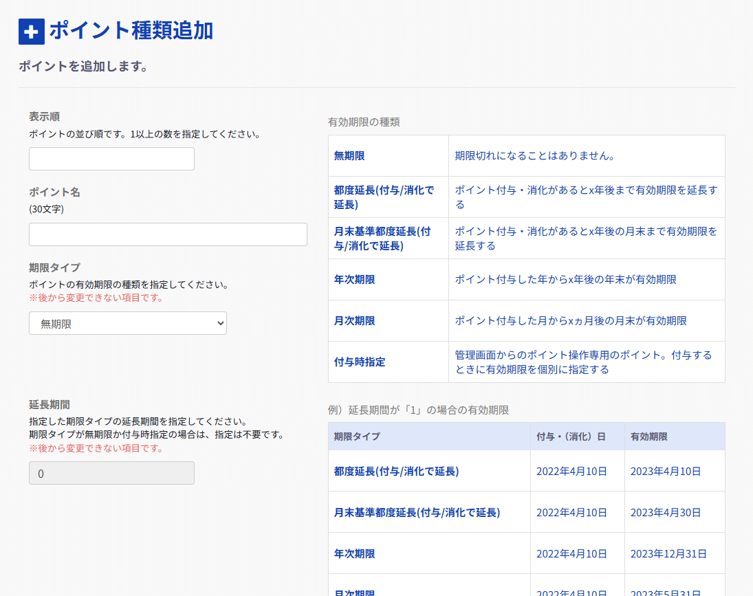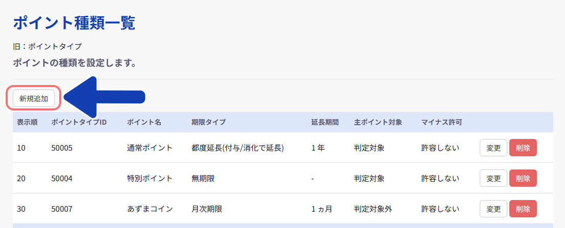 有効期限が異なるポイントを複数種類作成しよう