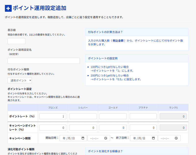店舗ごとに、ポイントの運用方法を自由に設定できます